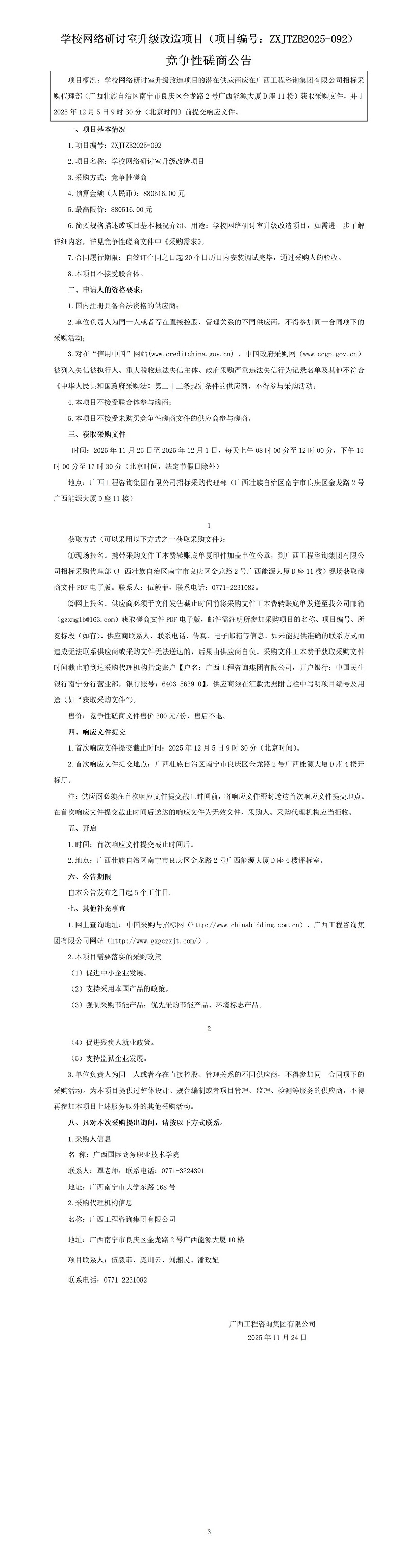 学校网络研讨室升级改造项目(项目编号:ZXJTZB2025-092) 竞争性磋商公告