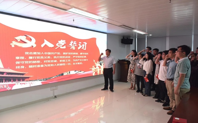 公司党委书记、董事长、总经理庞汉领誓,全体党员举起右拳,重温入党誓词:“我志愿加入中国共产党······” 铮铮誓言,激励着广大共产党员牢记初心使命,以更加饱满的热情投身企业改革发展,切实发挥共产党员的先锋模范作用,永葆共产党员的政治本色。