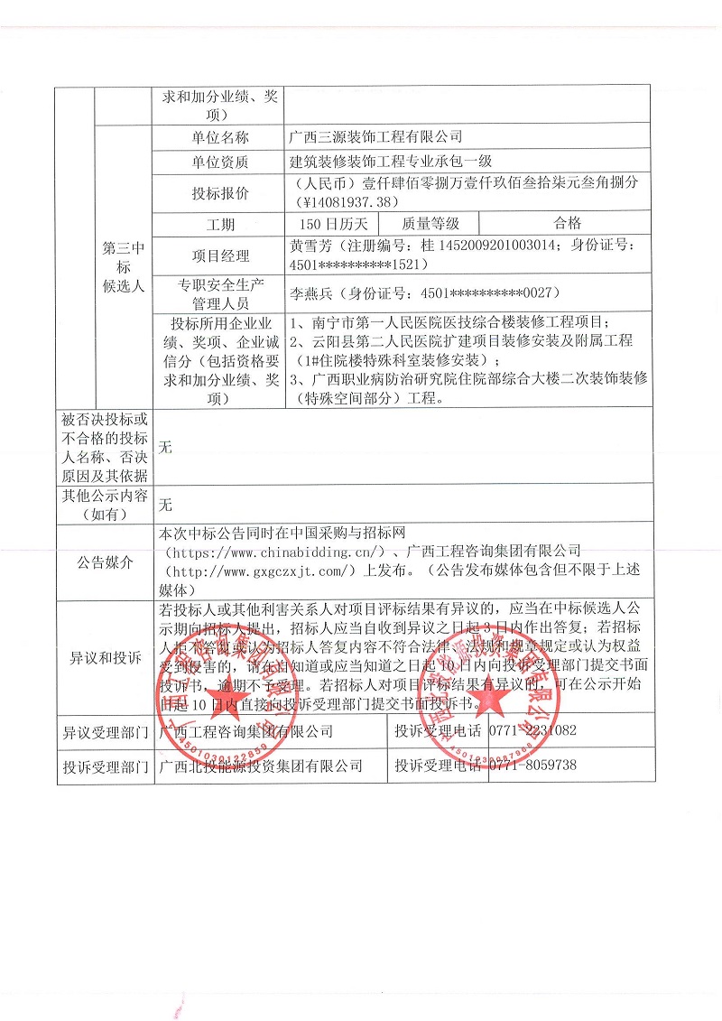 广西能源大厦办公场所装修工程(12、19、20楼)施工招标中标候选人公示