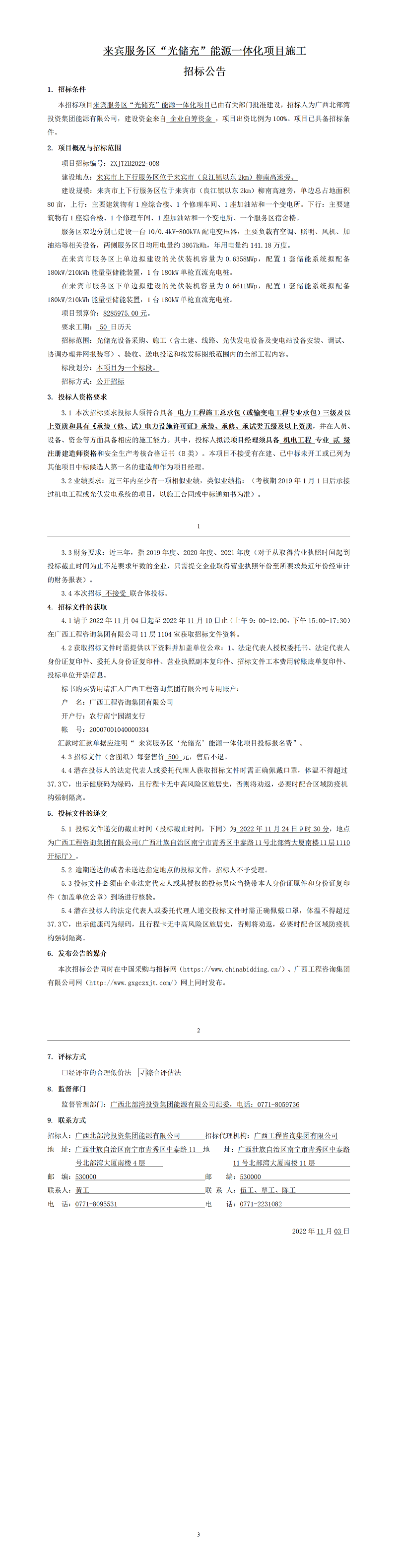 来宾服务区“光储充”能源一体化项目施工招标公告