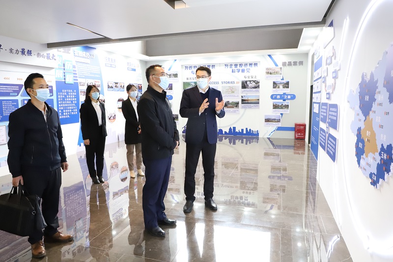 黄学军一行还参观了公司企业文化展示厅,详细了解了公司业务板块构成、特色业务优势、重大项目成果及区内市场布局等情况。