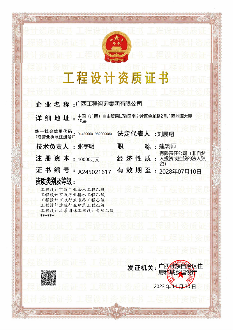 工程设计乙级资质(市政行业给水工程、市政行业排水工程、市政行业道路工程、建筑行业建筑工程、风景园林工程设计)