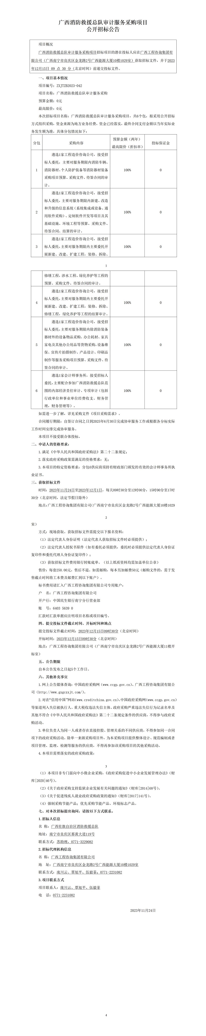 广西消防救援总队审计服务采购项目公开招标公告