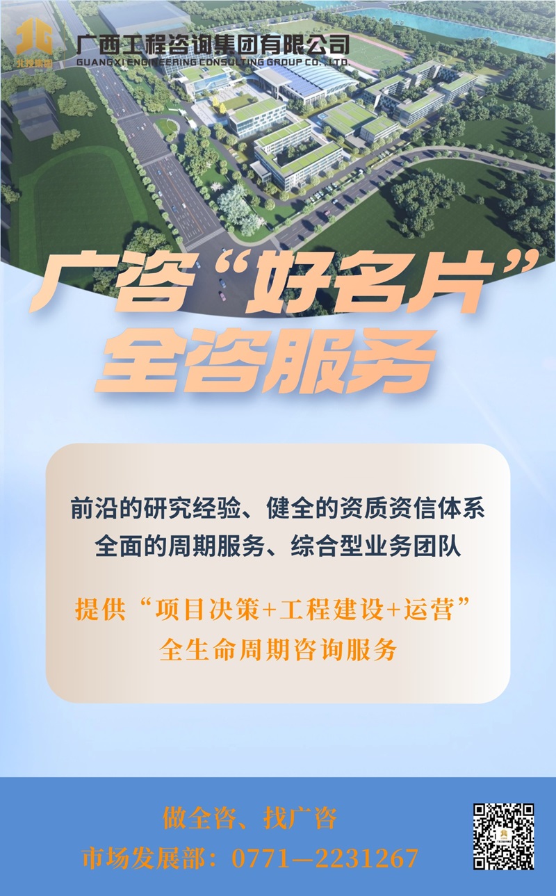 近年来,广咨集团紧跟工程mile米乐官网行业发展趋势,以政策研究、项目策划包装、工程mile米乐官网等优势业务板块为引领,推动招采代理、勘察设计、监理业务板块发展成熟,高效运营全咨服务模式,助力业主单位提升项目投资决策科学化水平,提高投资效益、工程建设质量和运营效率,已发展成为区内全咨服务水平领先的智库企业。
